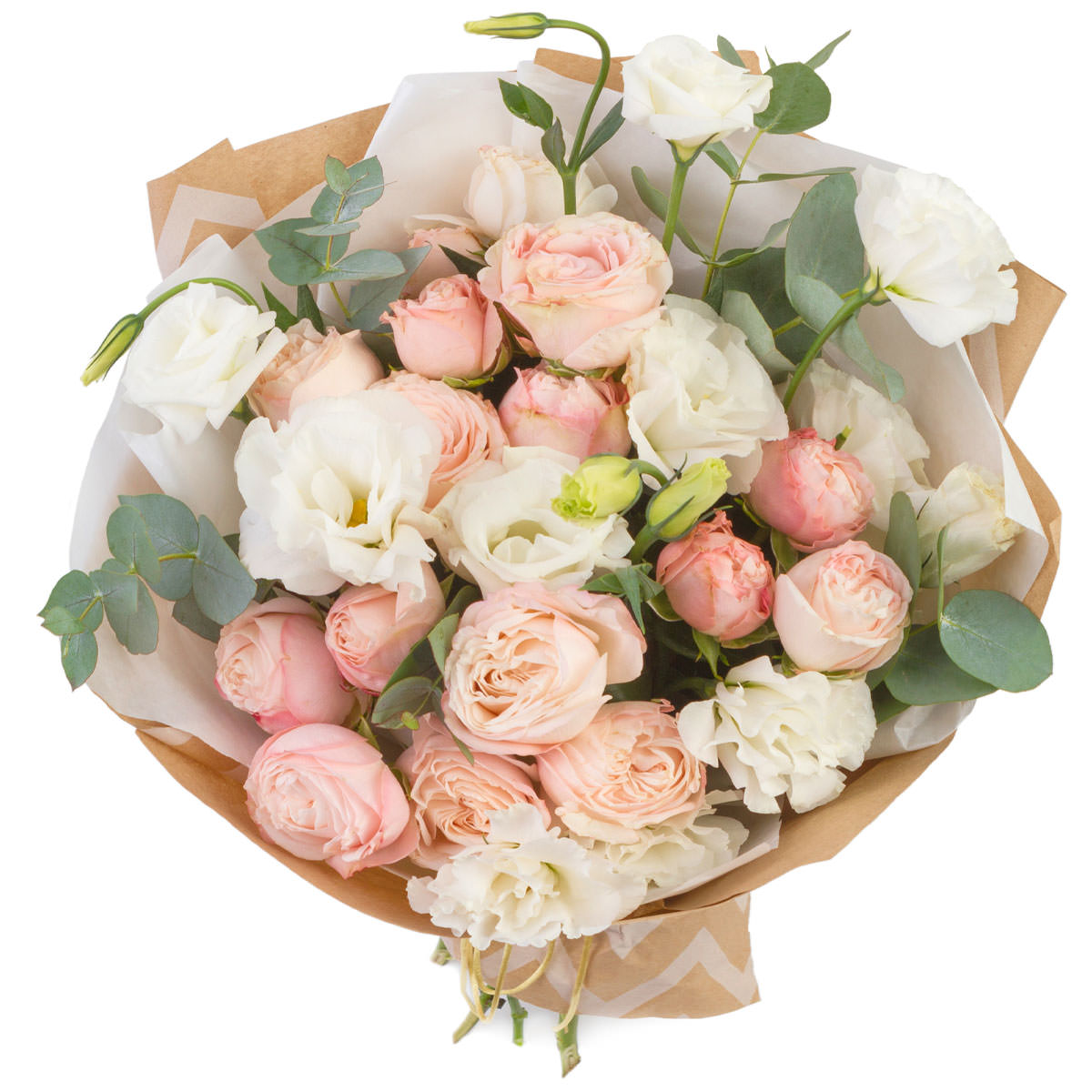 | Состав | Пионовидные розы, Розы, Эвкалипт, Эустомы |
