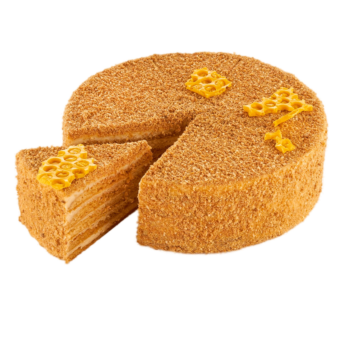 Торт «Медовик» — это настоящая классика русской кондитерской традиции, воплощающая в себе сочетание простоты и изысканного вкуса. В основе торта — ароматные медовые коржи, пропитанные нежным сливочным кремом. Каждый слой раскрывает мягкость и сладость меда, сбалансированную легкой кислинкой сливок. Торт «Медовик» — это не просто десерт, это вкусное напоминание о теплых семейных праздниках и детских радостях. Это отличный выбор для любого торжества или просто для приятного чаепития.